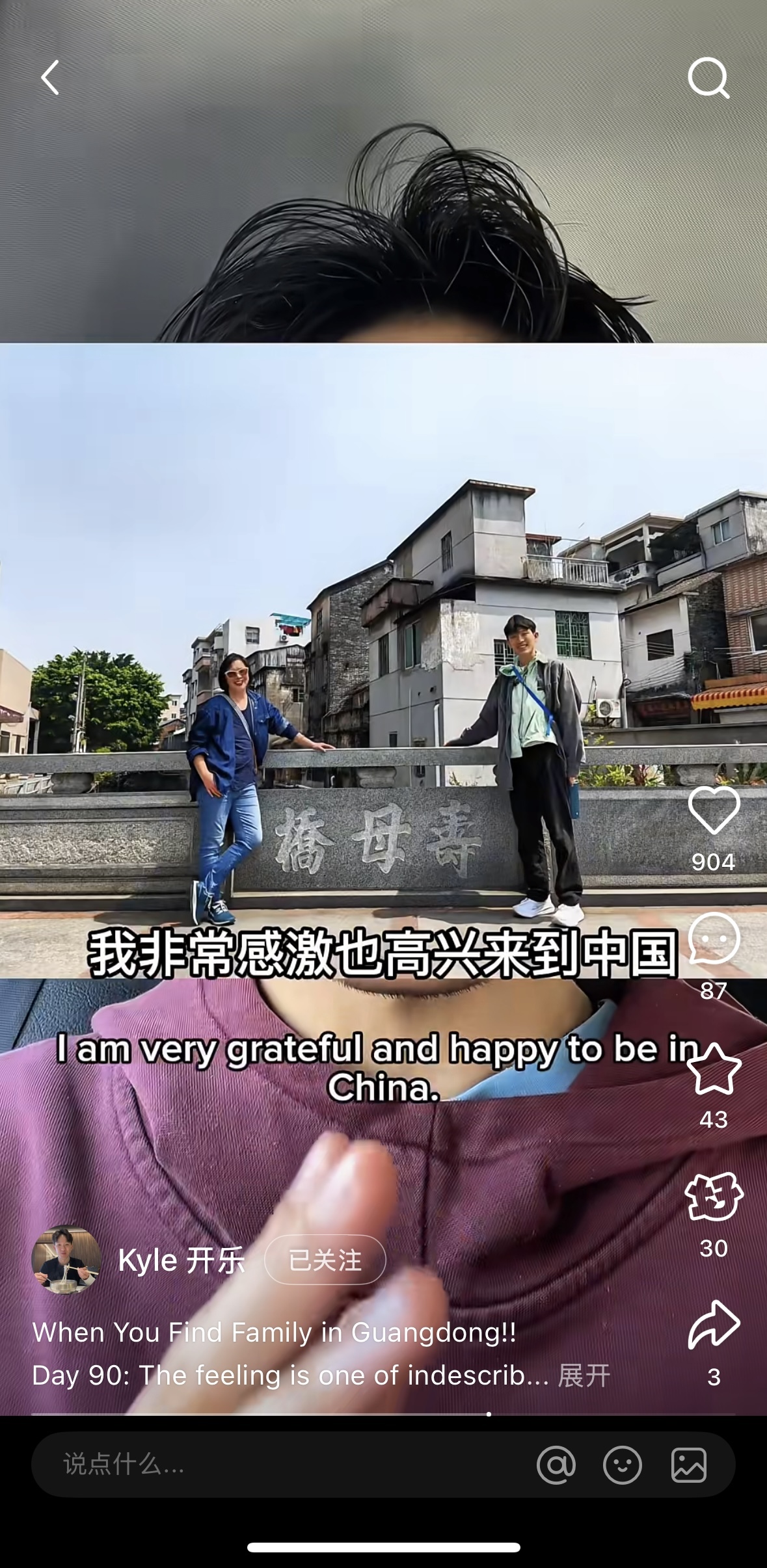 今年2月,在一次视频分享中,开乐提到母亲的家族源自佛山市南海区九江镇,但不确定是否还有亲戚在九江,计划3月与母亲一同寻根。未曾想,他的寻亲视频一夜之间爆火,收获了3000多个点赞和500多条评论。